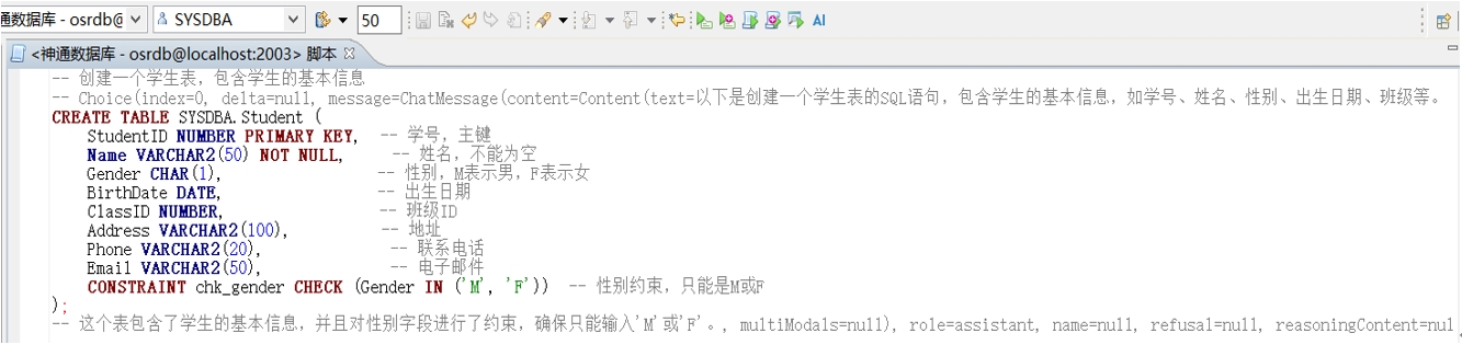 為進一步賦能企業高效利用數據資源,神通數據庫的DBStudio工具中引入了DeepSeek能力改寫了原有的AI智能補全功能,使用者能夠以對話的便捷方式,將自然語言無縫轉化為SQL及復雜查詢語句,這一功能徹底扭轉了以往數據庫交互依賴專業編碼的局面,升級為“全民對話”的模式,大大降低了企業數據驅動能力的技術門檻。