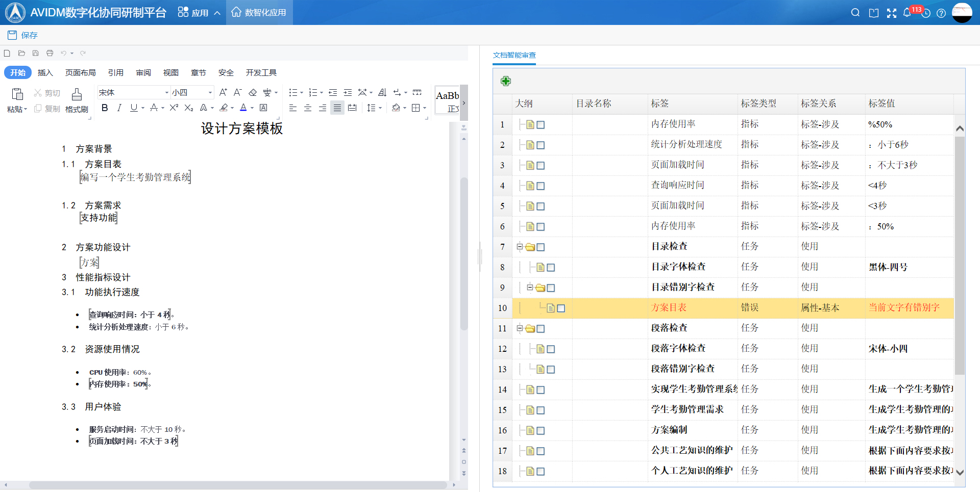 調(diào)用DeepSeek大模型的指標(biāo)抽取與分析能力, 通過(guò)在系統(tǒng)中內(nèi)置合規(guī)性規(guī)則庫(kù)(如結(jié)構(gòu)設(shè)計(jì)文件檢查規(guī)則、工藝設(shè)計(jì)文件檢查規(guī)則等),以及各種文檔模板的格式規(guī)范性要求,自動(dòng)檢查文檔的格式規(guī)范性、內(nèi)容完整性和邏輯矛盾,支持多文件關(guān)聯(lián)審核。