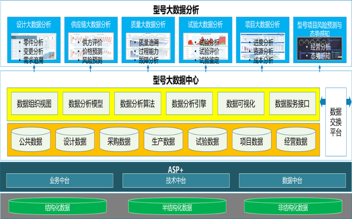 多種場景數據分析與應用: 根據不同業務場景提供大數據分析、數據搜索、數據圖譜、數據應用和數據交換等各類數據服務,提供數據變更分析、數據追溯分析、產品質量分析、成功數據包絡分析、項目態勢分析等大數據分析能力。
